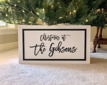Christmas Tree Collar Box Wooden Tree Stand With Family Name Etsy